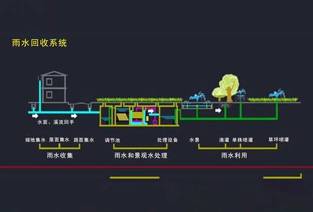 各不同的雨水收集流程都具有针对性,可以有效处理不同汇水面的雨水。既可以有效收集雨水又可以合理节约成本兼顾系统的雨水预处理、雨水蓄水、雨水深度净化、雨水供水、补水和系统控制。专业装置,材料,可以方便地解决雨水收集中特殊问题,如弃流、蓄水、供水等。收集设计中尽可能避免电气设备的使用,更多利用雨水自流的特点完成污染物的自动排放,净化、收集,做到真正节能、环保、高使用寿命、低成本的特点。整套系统都由雨水控制器进行控制,完成收集、净化、供水、补水,安全保护等功能。